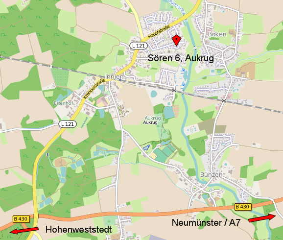 Nach Aukrug-Innien kommen Sie über die B-430 aus Neumünster oder